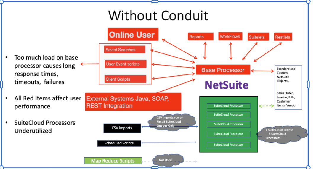 Conduit Enterprise has a significant impact of improving NetSuite performance by moving CPU load from base processor to SuiteCloud Processors.
